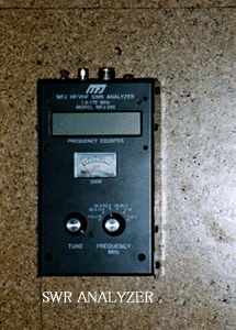 このSWRアナライザーと言うのは、製作したアンテナの共振周波数がどこか解る測定器です。自作のアンテナでは、共振周波数がアマチュアバンド内にあるとは限りません。(SWR計ですとオフバンドになってしまいます)その時にこのメータを見ながらアンテナを調整していけば希望周波数に簡単に合わせる事が出来ます。
