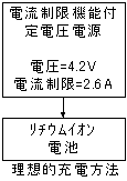 もし、携帯電話用リチウムイオン電池充電器が余っていれば、それが使える可能性があります(携帯電話を買い換える度に充電器が余る?)。携帯電話用電池の容量の方が少ないので、定電流部分の電流が低く充電に時間がかかりますが問題はありません。ただ、充電器によってはタイマーを持っていて、一定時間以内に充電が終わらなかった場合は強制終了する可能性もあります。その場合は何回かに分けて充電する必要がありますが、廃物利用ですので利用価値は大きいでしょう。つなぎが面倒でしょうが工夫してみて下さい。 |