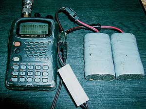 ハンディー無線機だとこの電池2個を直列にすれば使用可能でしょう。物によっては3個直列かも。個々のリグの必要電圧を確認して下さい。私が使っているVX-5だと2個直列でフルパワー5Wが出せます。VX-5専用電池は7.2V700mAですから、秋月のリチウムは3倍以上の容量です。外付けなので邪魔ですが、重さは大したことがないので予備電池として常にウェストポーチに入っています。