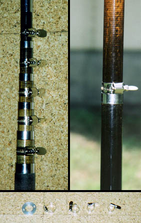 アンテナの固定は先端にサイズの違う網を固定する時に利用するジョイント金具に穴を開けて固定しています。